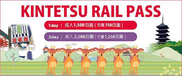近鐵電車/一日券 ¥1,500、兩日券 ¥2,500